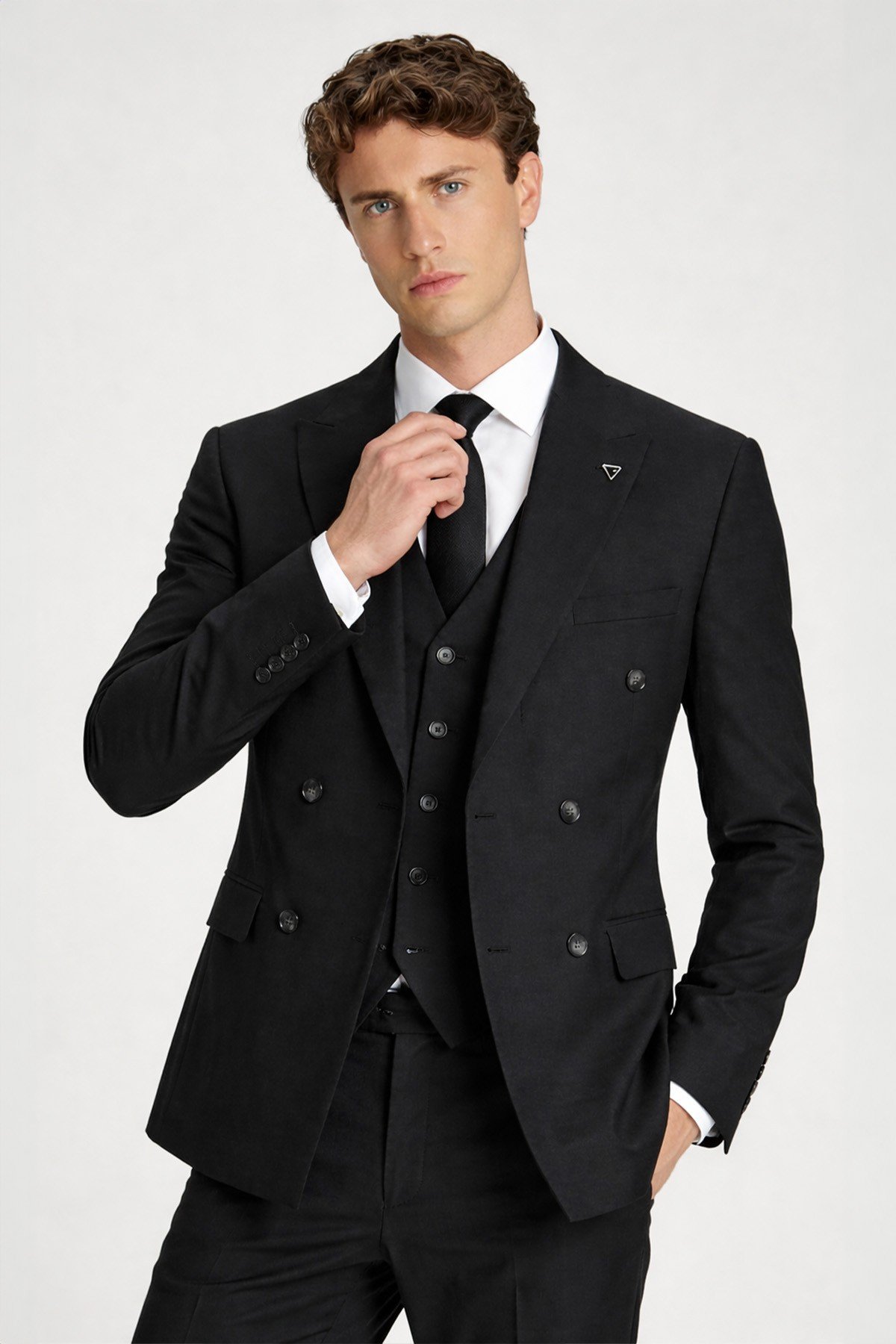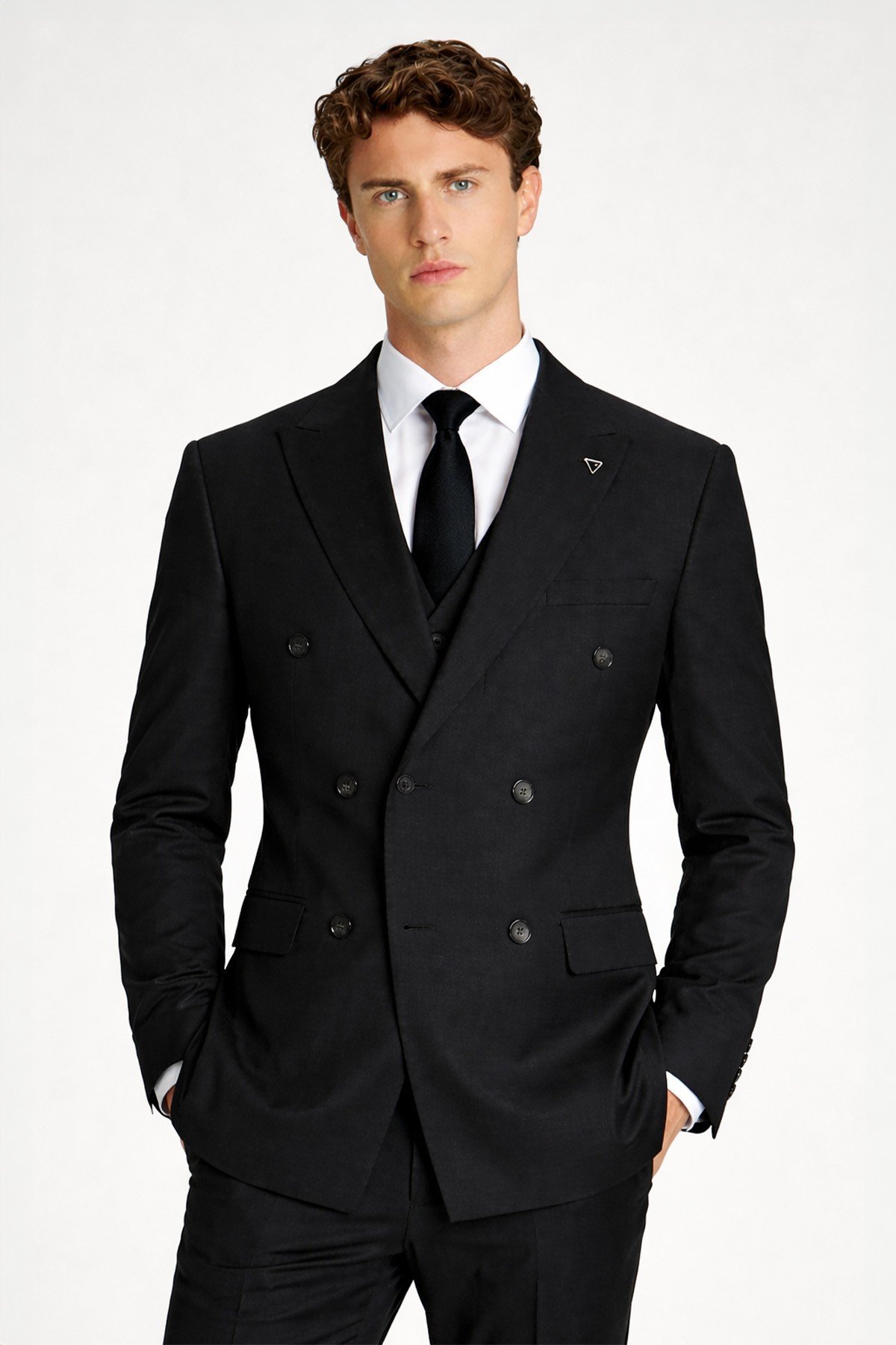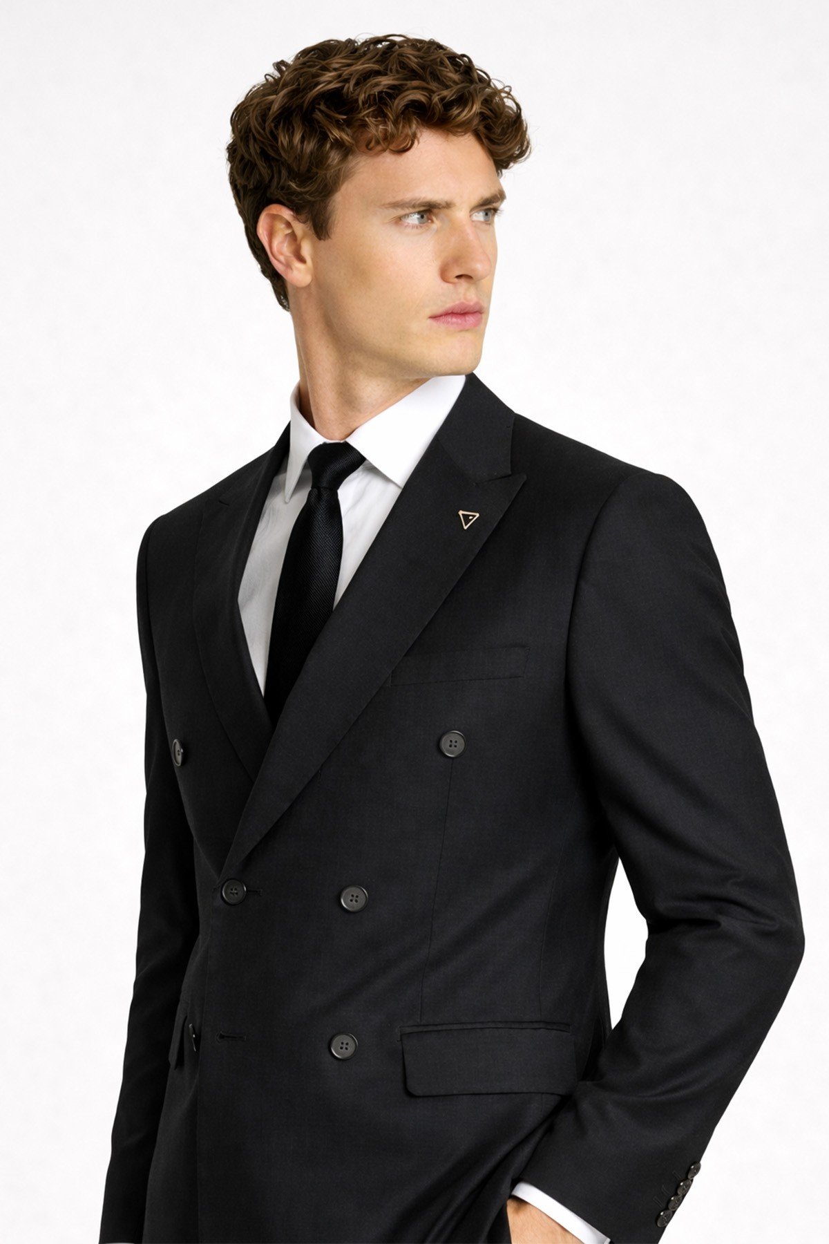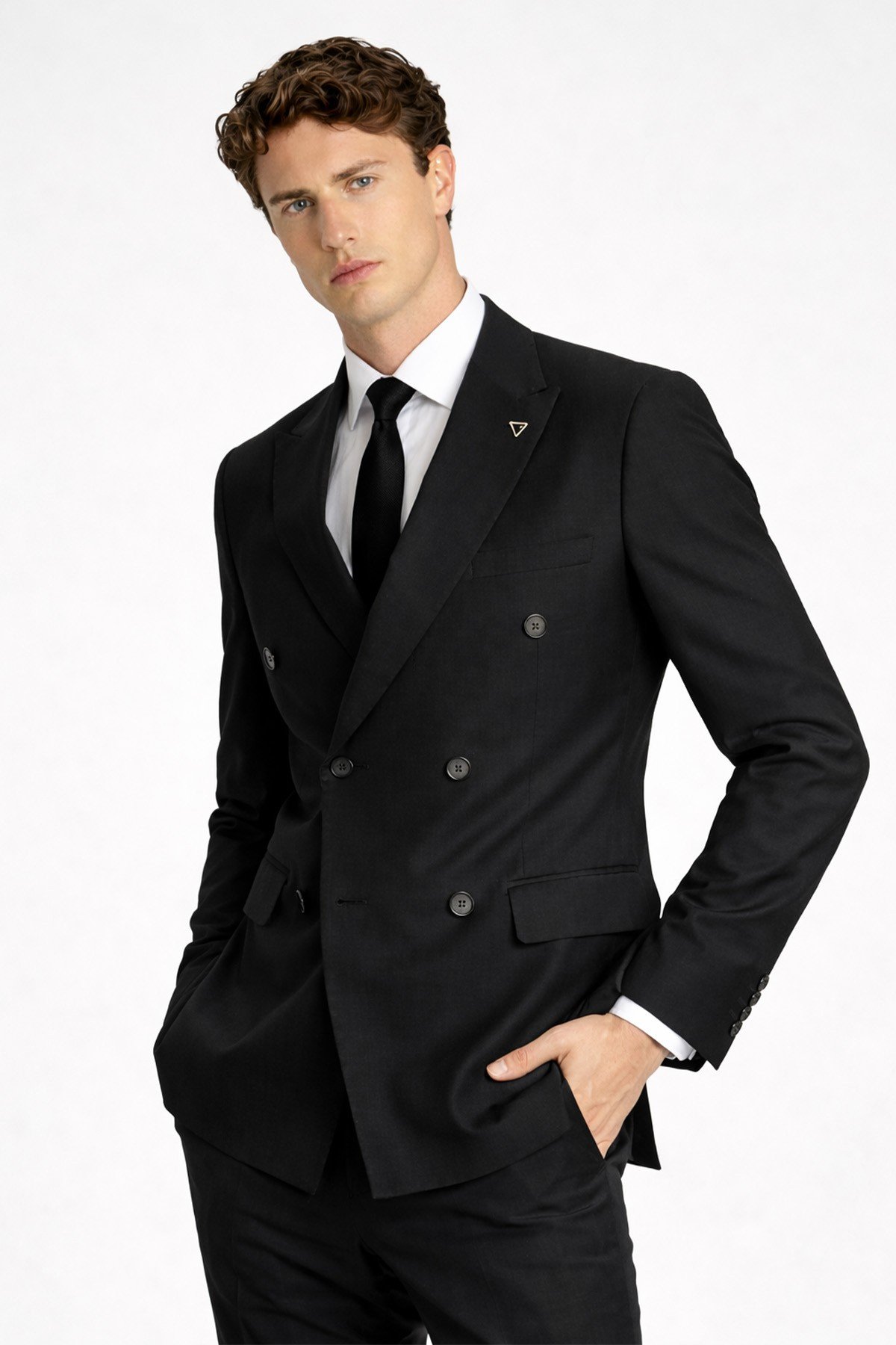 Giotelli siyah kruvaze yaka takım elbise, zamansız şıklığı güçlü bir siluetle buluşturarak klasik giyime prestijli bir yorum kazandırır. Kumaşı gün boyu formunu koruyan dayanıklı bir yapı sunarken esnek lifler hareket konforunu destekler. Comfort fit kalıp vücuda baskı yapmadan dengeli bir oturuş sağlayarak düzenli ve rahat bir duruş oluşturur. Düz desen sade ve rafine bir görünüm sunarken kruvaze yaka tasarım karizmatik bir ifade kazandırır. Fleto kapaklı cepler, klasik paça ve çift yırtmaç detayları akıcı ve güçlü bir hat oluşturur; tam astarlı iç yapı takımın formunu uzun süre korumasına yardımcı olur. Düğmeli kapanışla tamamlanan bu model, iş hayatından özel davetlere kadar güven veren ve seçkin bir stil arayanlar için ideal bir tercihtir.